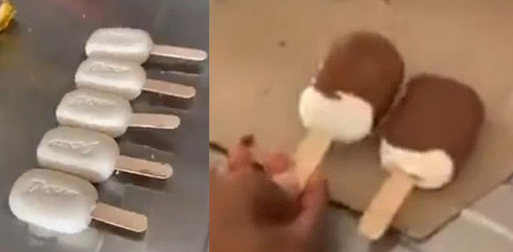 Another man is also shown taking several bites and lauds Domínguez’s fake ice cream bar.
