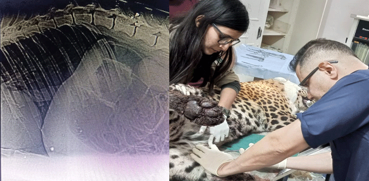 As per details, the leopard was rescued from Hatila Balla in Azad Jammu and Kashmir and was transported to a veterinary clinic in Islamabad for better medical treatment, where X-ray images showed severe spinal injures and several bullet wounds.