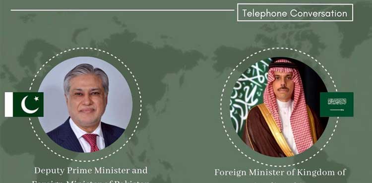 ISLAMABAD: Deputy Prime Minister and Foreign Minister Senator Mohammad Ishaq Dar held a telephonic conversation on Saturday with Saudi Foreign Minister Prince Faisal bin Farhan Al Saud to discuss the latest regional developments, particularly the situation in Gaza, according to a statement from the Foreign Office.