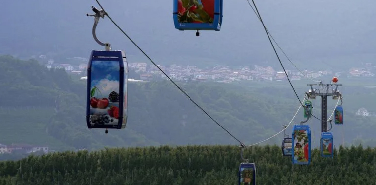 Apple farmers in northern Italy have a new way of getting their harvest down the hills and into storage in caves below – a cable car system dedicated to transporting the fruit.