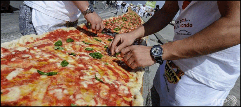 Along the seafront of Naples in Italy, 100 chefs collaborated to create a 1,853.88 metres (6082.2 feet / 1.15 miles) long Neapolitan, which Guinness World Records has confirmed is officially the longest pizza ever made.