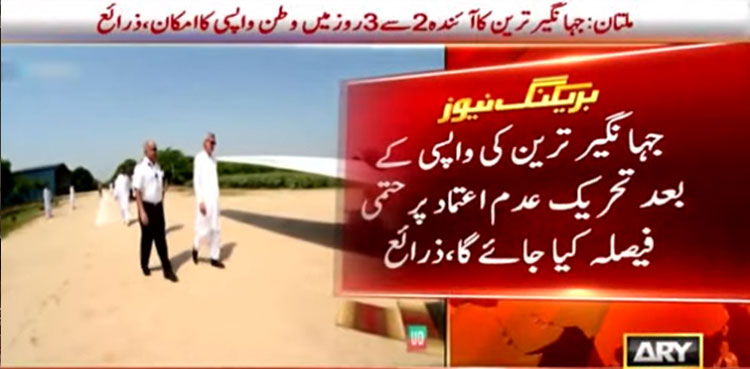 LAHORE: Estranged PTI leader Jahangir Tareen has decided to immediately fly back home in the light of the fast-changing political situation in the country, ARY News reported, citing sources.