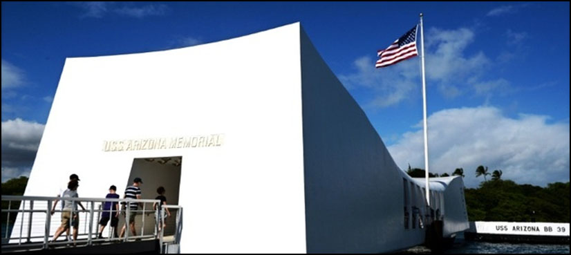 The Arizona memorial attracts almost two million visitors annually, who file through a white building just above the enormous ship’s wreck.