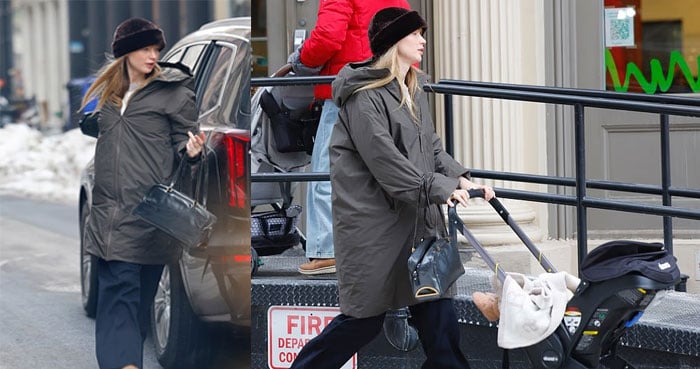 The Oscar-winning actress, 35, was spotted pushing a stroller through snowy sidewalks on Tuesday, bundled up against the cold as she enjoyed time outdoors with her youngest child.