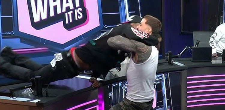 The situation reportedly reached a breaking point when Jey Uso opted to cut the interview short, standing up and moving toward Cam’ron’s side of the set. At that moment, Jey Uso pulled Cam’ron across the desk and threw several strikes before security and Ma$e intervened, bringing the confrontation under control.