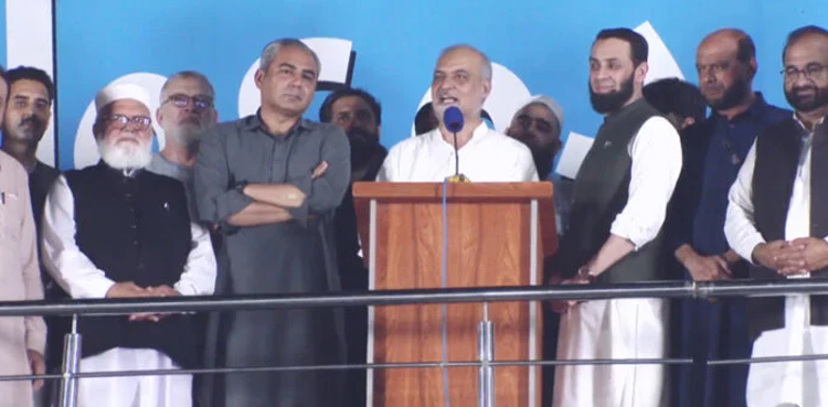 Members of the government committee, including Atta Tarr and Punjab’s Caretaker Chief Minister Mohsen Naqvi, were present on stage as Liaquat Baloch shared the outcomes of the talks.
