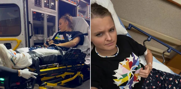 JoJo Siwa also shared a carousel of photos of herself in the hospital and being loaded into an ambulance.
