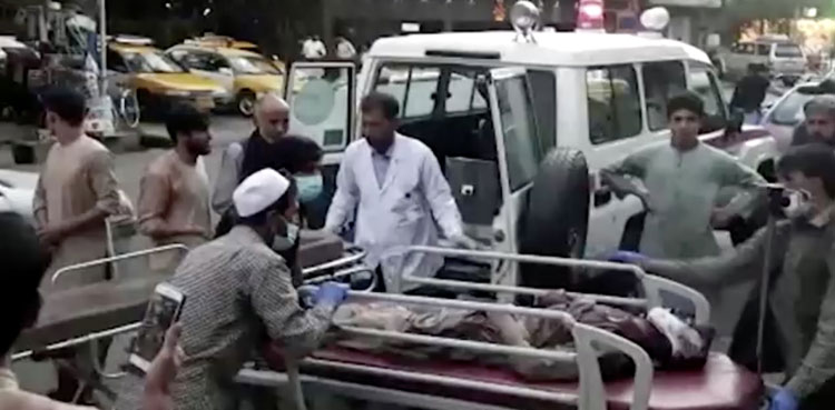 There was no complete death toll, but video images uploaded by Afghan journalists showed dozens of bodies of people killed in tightly packed crowds outside the airport.