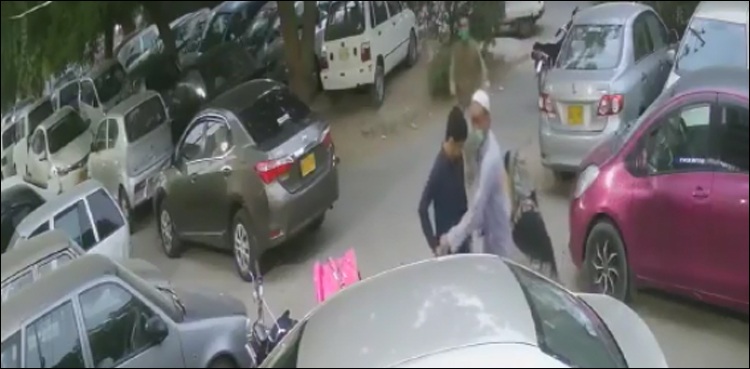 The incident occurred at around 7:00 pm and shows how two men intercepted a vehicle soon after it was parked outside a shopping mall in the Gulistan-e-Jauhar area.