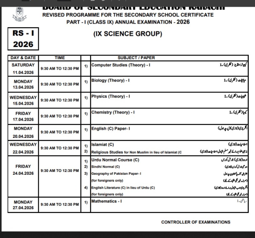 KARACHI: The Board of Secondary Education Karachi (BSEK) has released the revised schedule for the 2026 annual Karachi matric examinations (exams), ARY News reported.