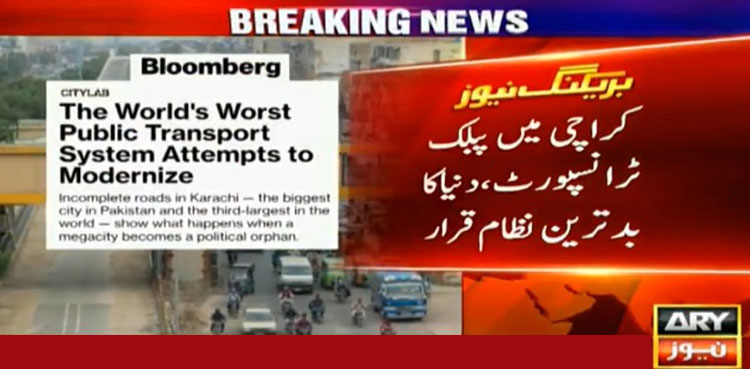 International magazine Bloomberg on Tuesday declared Karachi’s public transportation worst in the world.