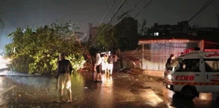 In Quaidabad, a couple died after the roof of their house caved in. Another fatality was reported near Yar Muhammad Goth in Landhi after a lightning strike. In Korangi No. 5, one person was killed when a tree fell near Tasleem Ground.