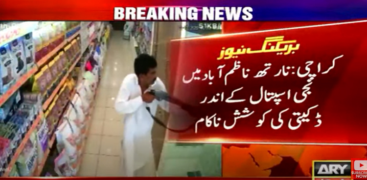 The incident took place in Karachi’s North Nazimabad area. Four dacoits stored a private hospital but the security guard resisted the robbery and killed one dacoit. A security guard also sustained injuries by the firing of the dacoits.