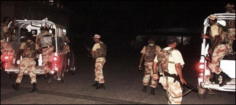 Rangers arrested five people from Mehmoodabad’s Chanesar Goth area. Weapons and drugs were seized during the raid. The nabbed persons were taken to an unknown location for investigation.