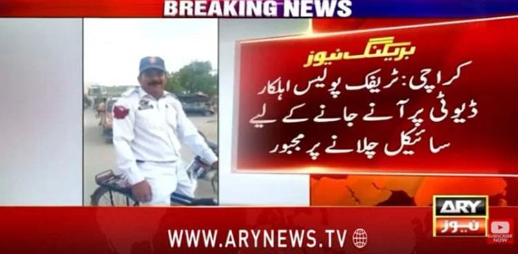 KARACHI: Following a steep increase in petrol prices, a video from Karachi showing a traffic police officer commuting on a bicycle has gone viral on social media, ARY News reported.