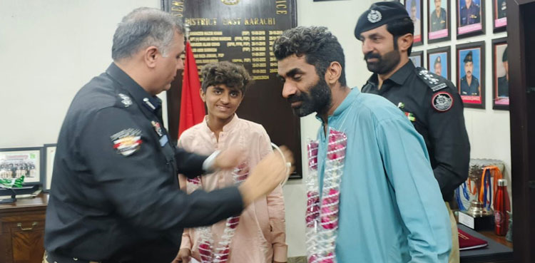 KARACHI: Senior Superintendent of Police (SSP) Dr. Farrukh Raza on Tuesday awarded a cash prize and a bouquet of flowers to Tanveer, the child who helped locate the body of three-year-old Ibrahim. Ibrahim had tragically drowned after falling into an open manhole near the Nipa roundabout on Sunday night, ARY News reported.