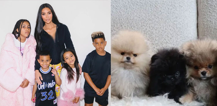 Last week, the SKIMS founder shared as series of photos revealing that she gifted each of her four children – North, 12, Saint, 10, Chicago, 7, and Psalm, 6 – their own small Pomeranian puppies for Christmas – two with dark fur, one with a cream coat, and one with sable fur.