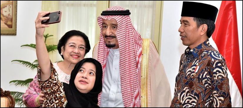 The king was also photographed posing for a selfie with former president Megawati Sukarnoputri and her daughter Puan Maharani, who is a member of Widodo’s cabinet.