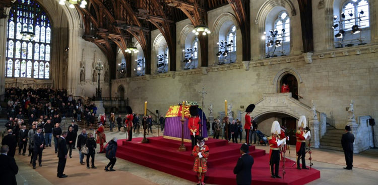 After witnessing the sombre scene in parliament’s Westminster Hall, Biden, Japan’s Emperor Naruhito and other world leaders were due to attend a reception with King Charles III.