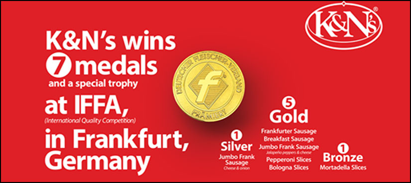 The IFFA International Quality Competition for sausages and cold cuts is heldat the world’s leading trade fair for the global meat industry. In this competition, K&N’s competed against renowned food brands from Europe, North America, South America and Asia,and won medals for all the 7 products that they entered from their Deline range.