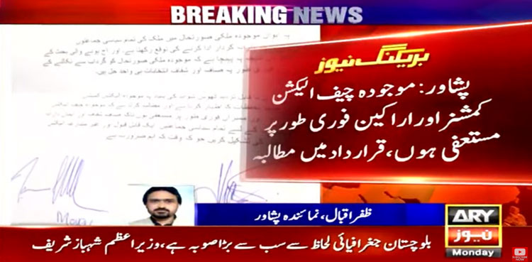 PESHAWAR: The Khyber Pakhtunkhwa (KP) Assembly has passed a resolution against the Chief Election Commissioner (CEC) Sikandar Raja Sultan and demanded his resignation, ARY News reported on Monday.