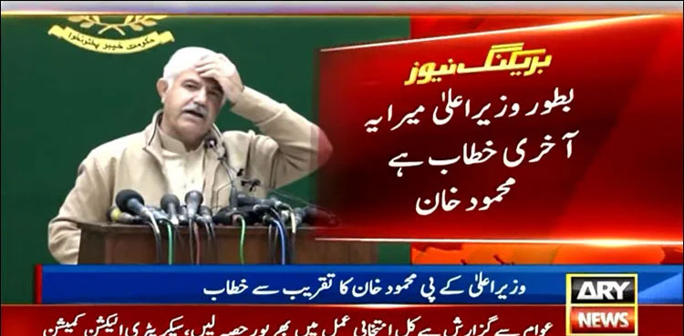 Addressing the presser, Mahmood Khan stated that this was his “last address” as the KP chief executive.