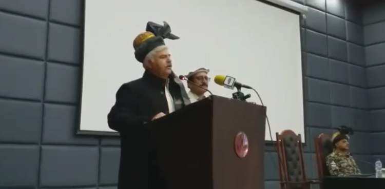 PESHAWAR: The Khyber Pakhtunkhwa (KP) Chief Minister Mahmood Khan on Tuesday arrived in Mohmand district where he met tribal elders and visited newly-constructed Mamad Ghat Cadet College, ARY News reported.