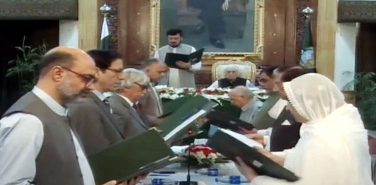 PESHAWAR: Governor Khyber Pakhtunkhwa Ghulam Ali on Saturday administered oath to members of newly appointed caretaker cabinet, comprising nine ministers and two advisers and a special assistant, ARY News reported.