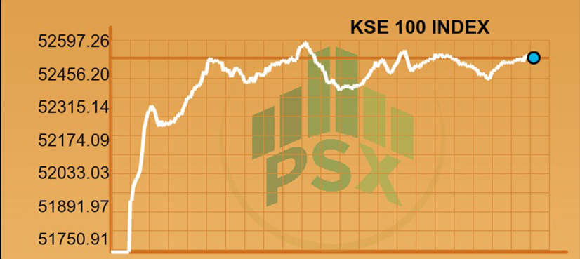 KARACHI: Benchmark KSE-100 index of the Pakistan Stock Exchange (PSX) on Monday, the opening day of the week, gained 636.96 points and closed at 52599.07 points, breaking the barrier of 52,000 points, ARY News reported.