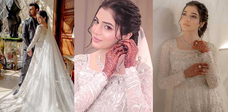 In the recent Instagram posts, Laiba Khan wore a stunning white maxi with a long trail, crafted with intricate resham embroidery and delicate sequin work, giving her elegant and natural flow. From her hairdo and make-up to her jewellery added the touch of sophistication, while she covered her head with a simple, plain net dupatta.