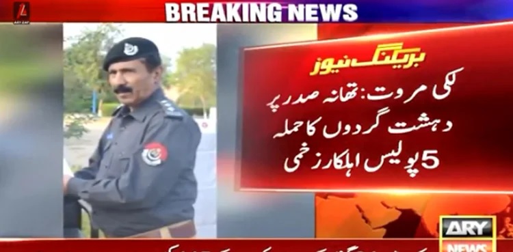 LAKKI MARWAT: At least four policemen, including a Deputy Superintendent of Police (DSP), were martyred and six others were wounded when terrorists attacked Lakki Marwat’s Saddar police station, ARY News reported.