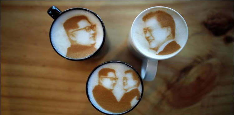 “I watched the inter-Korean summit and was very impressed,” said owner Kim Jeong-il, who coincidentally shares his name with Kim Jong Un’s father. “My shop is named ‘In & Out,’ and I made (the latte) praying for peace in the hope that we would be able to go ‘in and out’ of South Korea and North Korea.”