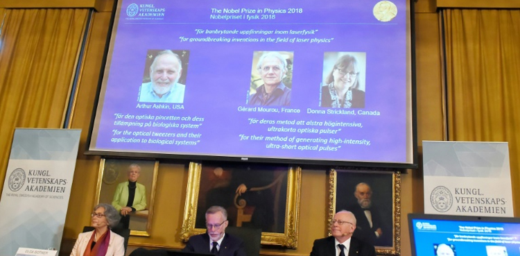 Meanwhile Mourou, 74, and Strickland — only the third woman to win the Physics Prize — won for helping develop a method to generate ultra-short optical pulses, “the shortest and most intense laser pulses ever created by mankind,” the jury said.