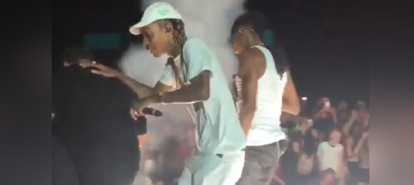The rap superstar was performing with fellow hip-hop artist Wiz Khalifa in the northeastern state when the metal railing caved under the weight of attendees leaning against it.