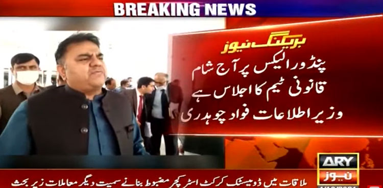 ISLAMABAD: Federal Minister for Information and Broadcasting, Fawad Chaudhry has said that the legal team will meet today (Monday) to discuss Pandora Papers leaks, ARY News reported.