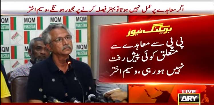 KARACHI: MQM-P leader Waseem Akhtar has demanded of the Election Commission of Pakistan (ECP) immediately halt the election process in Sukkur, Mirpurkhas, and Nawabshah pointing out anomalies in the election process, ARY NEWS reported.
