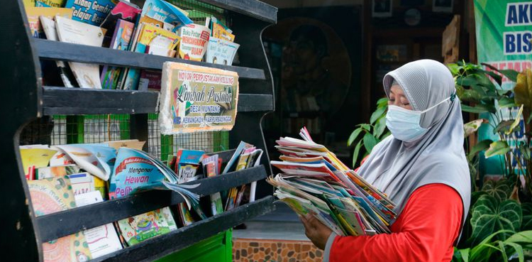 A librarian in Indonesia’s Java island is lending books to children in exchange for trash they collect in a novel way to clean up the environment and get the kids to read more.