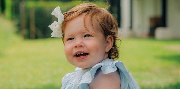 Wearing a light blue frock and white bow on her head, the red-haired toddler sat on the grass in a candid snapshot taken by close family friend Misan Harriman on Saturday, a spokesperson said.