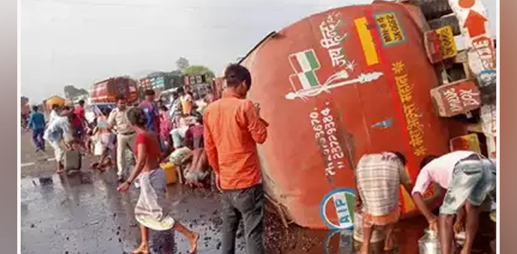 According to the report, the driver lost control of the truck that carried 12,000 litres of processed cooking oil from Surat city. The oil started to spill from the overturned vehicle that headed to Mumbai.