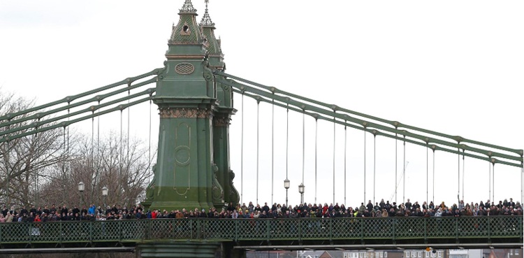 The annual event between rowing crews of England’s top two universities usually attracts hundreds of thousands of spectators to the west London stretch of the River Thames, with many standing on Hammersmith Bridge to watch the boats pass underneath.