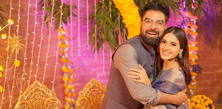 Much loved celebrity couple Iqra Aziz and Yasir Hussain were recently spotted at their friend’s mayun event.