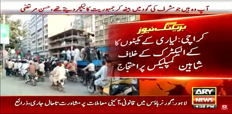 KARACHI: The residents of Lyari have staged a protest against the K-Electric at Karachi’s Shaheen Complex intersection for carrying out ‘unannounced and prolonged’ loadshedding, ARY News reported on Thursday.