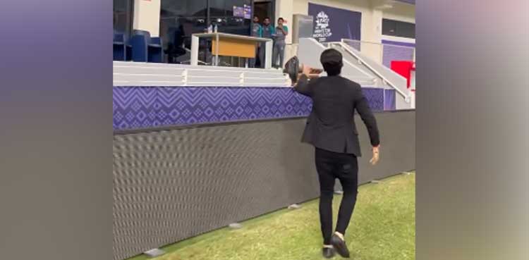 Saqib also met Bollywood actor Akshay Kumar and interacted with the Indian celebrity after the end of Indian innings.