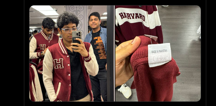 An Indian Youtuber visiting Harvard University was surprised after discovering that a jacket available at the institution’s store was labelled “Made in Pakistan.”