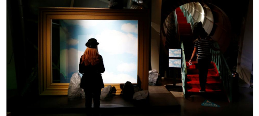 It transforms 10 of Magritte’s most notable works into 3D structures and visual elements for visitors to explore. They include “The Son of Man”, where the bowler-hatted subject’s face is obscured by a large green apple.