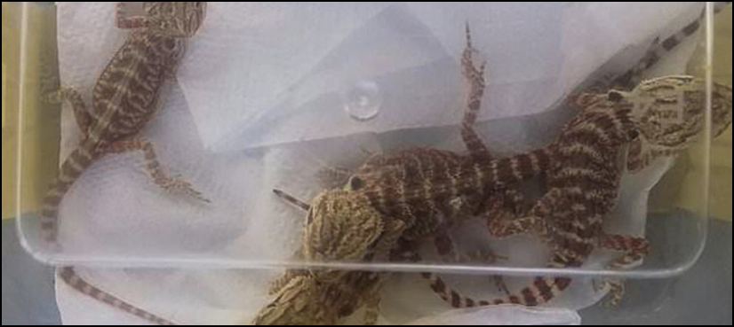 Authorities found 58 bearded dragons and eight African spurred tortoises.