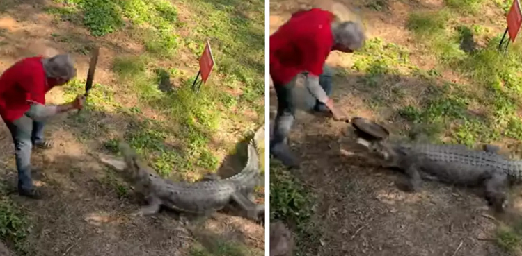 Man beats crocodile with frying pan; video goes viral