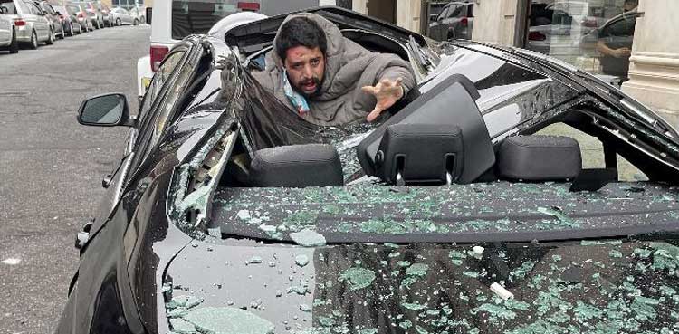 “I heard a big boom and I didn’t think it was a person at first,” an eye witness Christina Smith recalled the incident. “The back window of the car just busted out—exploded. Then the guy jumped up and started screaming.”