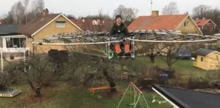In a video that went viral on social media, the man can be seen sitting at the centre of the drone that features four large metal wings made up of little propellors.