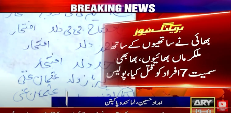 PAKPATTAN: In a gruesome incident, a man killed his mother, brothers, sister-in-law and three children over a property dispute in Punjab’s Pakpattan district on Saturday, ARY News reported.